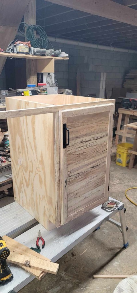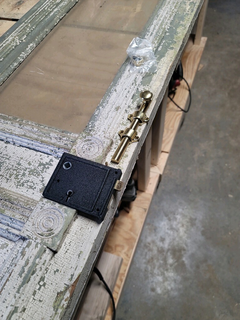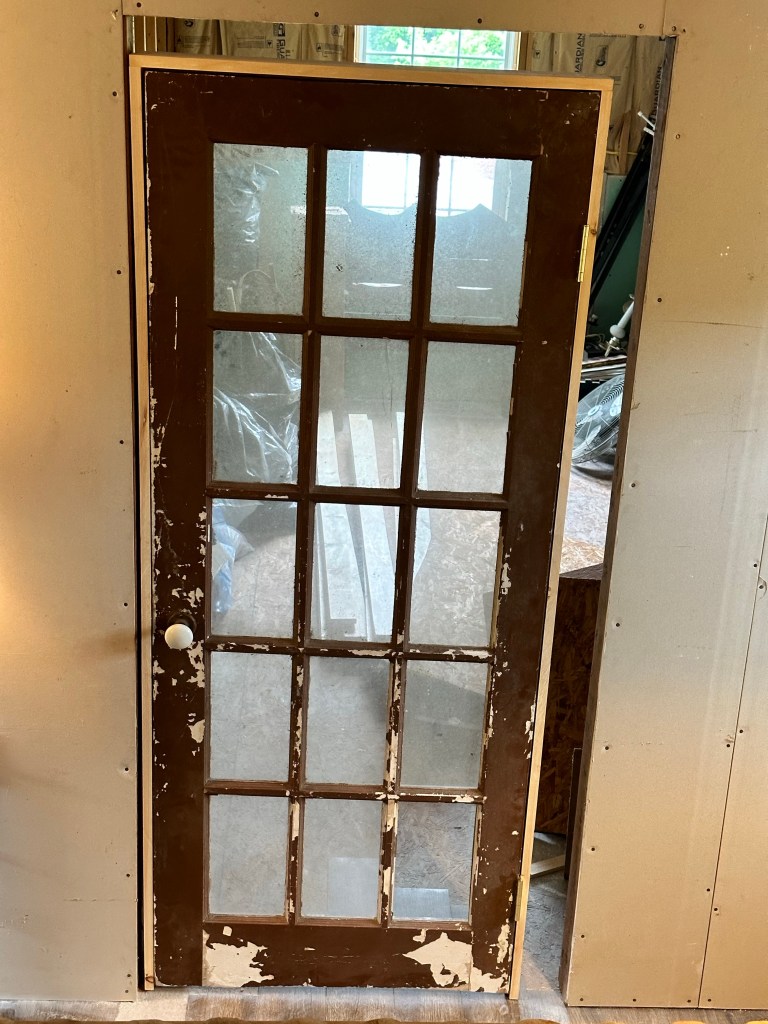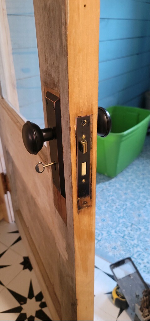 Another project my Dad, was able to work on was, installing hardware on my pantry door. I choose new hardware that is replicas of the old time hardware. We utilized one of the doors we had found on Facebook market place. He also has taken one of the vintage doors and made me a Dutch door with a pie shelf. Currently it is finished however due to Dad’s injured shoulder he can not install it by himself. This door will be installed eventually in between the kitchen and mud room !