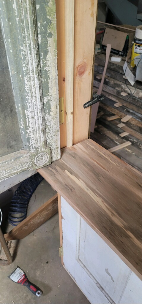 I absolutely love the old vintage look. I mean just look how fancy the old hinges are 👆Chad can not wait for we to be making pies for this shelf 😜