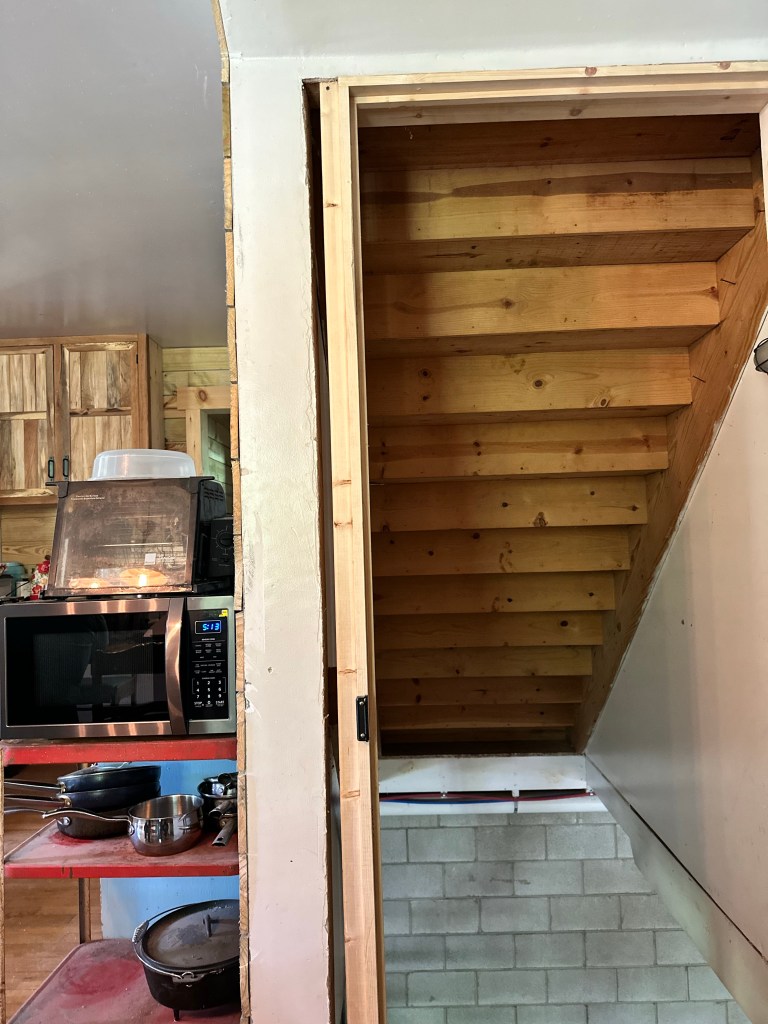 The basement loo, still has a ways to go but, luckily it’s functional. When Chad got all the electrical installed few things did not work and he was rather bummed because he didn’t have time to troubleshoot what went wrong. He literally worked up to the minute we had to leave to head back to Texas. Luckily, Dad was able to scratch his head for a few hours and was able to get it fixed.
