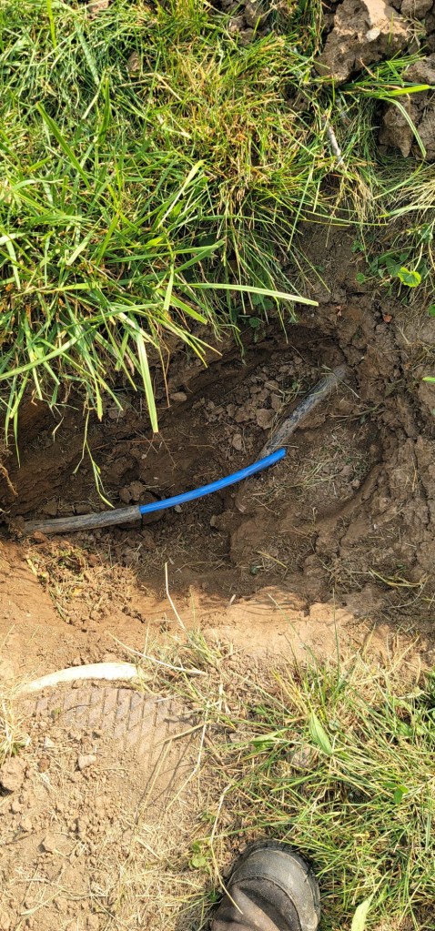 The water to the barn had a big leak last year so Dad had shut the water off to the barn. So, Payton got to go on a treasure hunt to look for buried treasure (water lines instead of gold LOL). Got the water fixed Way to Go Y’all !!! Payton may or may not have been thrilled about that treasure hunt.