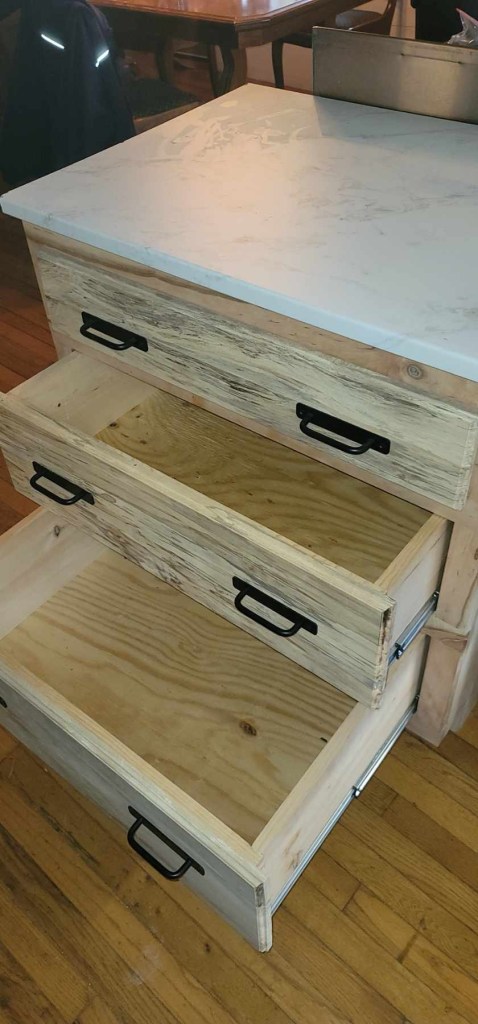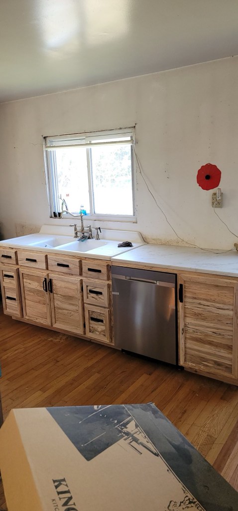 So Chad came up with a solution. Marble looking laminate. His selling point was, we can afford this out of pocket now and if I do not like it, we will save up the money to afford the countertops of a different material later down the road. He also said Laminate material has come along ways so we went and looked at different ones at Home Depot and Lowes and I was surprised how the quality looked at that price point. So I agreed. So the little bit here and there will eventually be all brand new 100% hand made cabinets by my Dad that will be passed down generation after generation. (We are paying outta pocket and saving up money 💵 for our projects. We want to remain debt free)