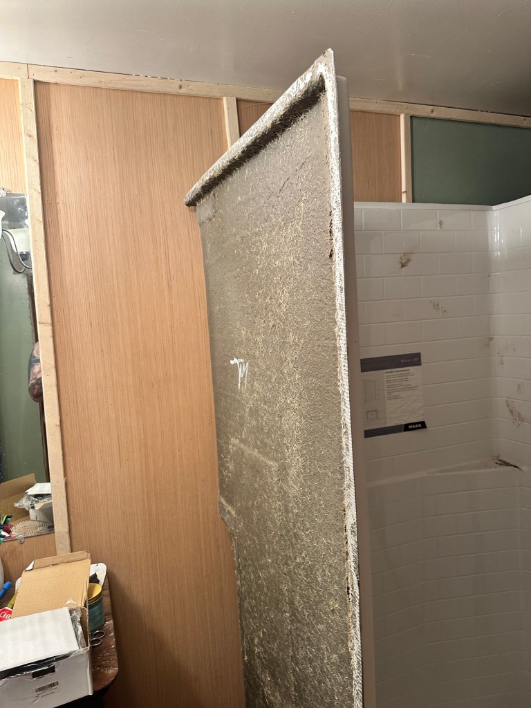 Shower stall before installed Dad working on installing showerShower complete!!!!!