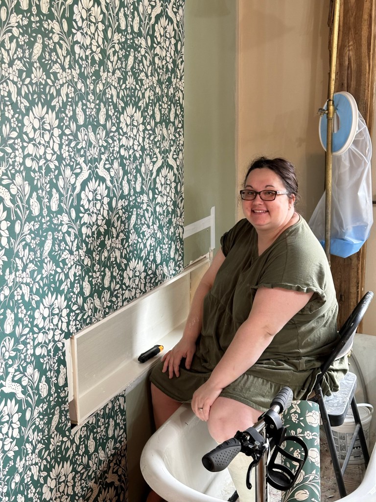With Chad’s knee and my foot we decided we definitely need handicap rails 🤣My Dad hand forged the hand towel hook! So cute!