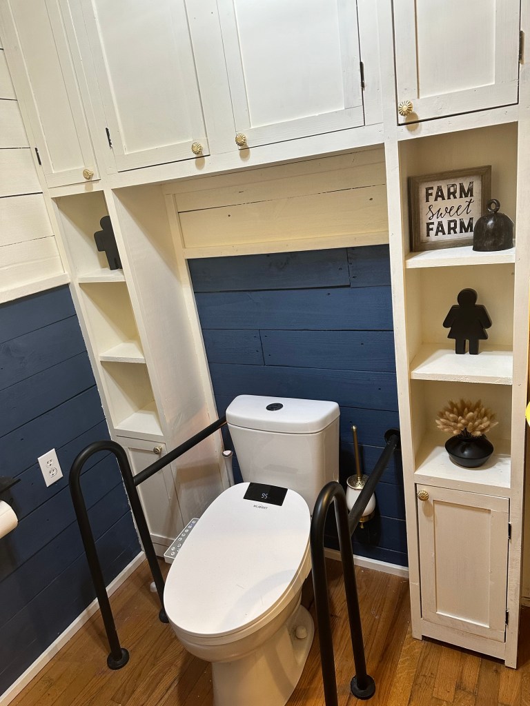 Luckily both Chad and I have similar tastes. We adore the rustic vintage farmhouse look. We also love the old Victorian time period. However, Chad also likes high tech gizmos and gadgets so, in the toilet closet of course he wanted a high tech Bidet toilet seat. I love the fact the seat is heated, to keep my tushy toasty 😉.