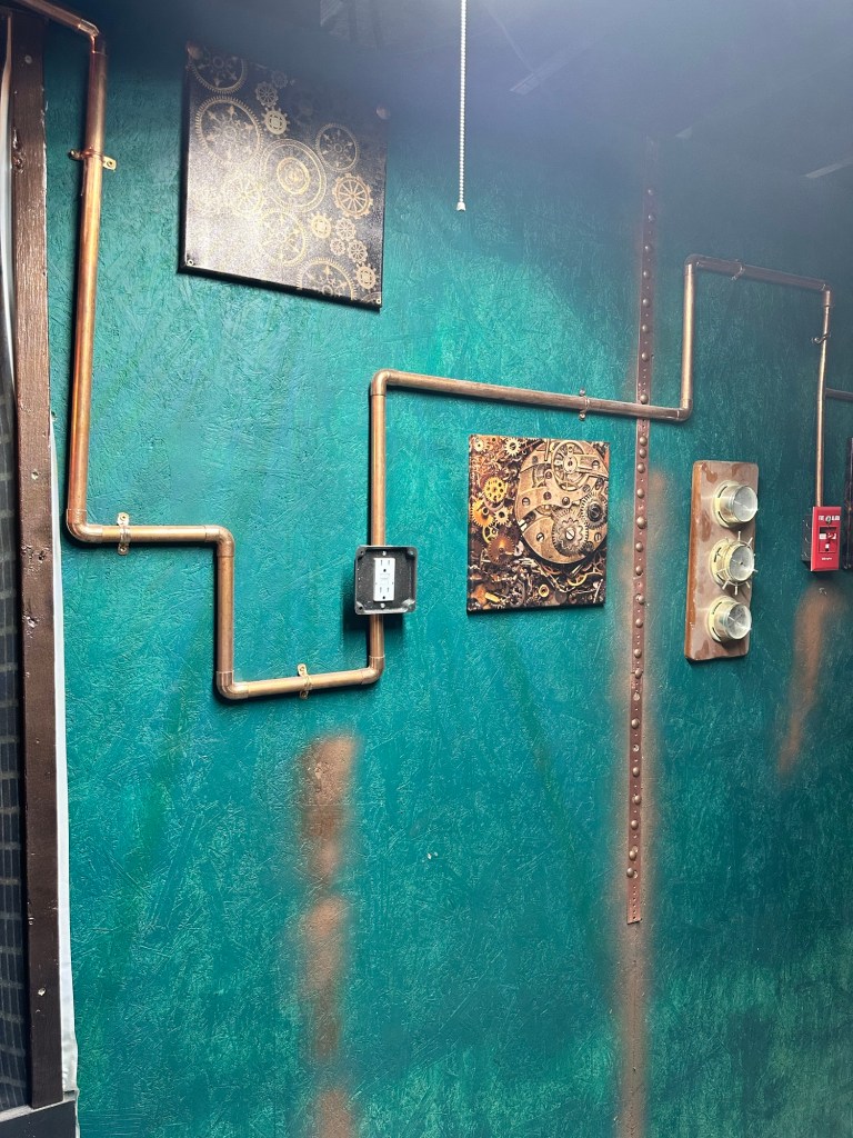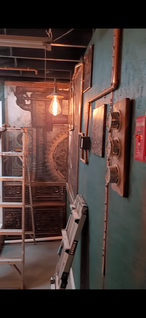 He decided to have a steampunk theme. I have to admit, I was a bit skeptical of his idea at first, but it is his man cave. After seeing all what him and my Dad have completed so far I’m actually impressed.