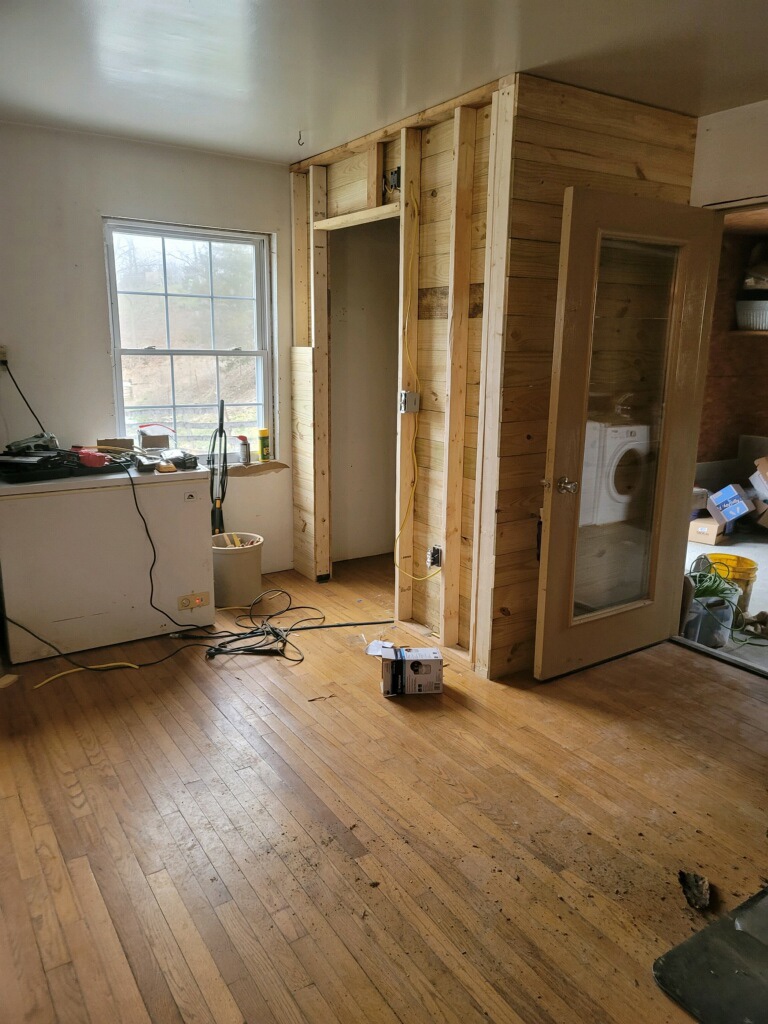We now have one bathroom with toilet and sink and old fashioned cast iron tub. In laundry room we have 2 washers and 2 dryers. Electric in the mud room, kitchen, living room, 2 out of the 5 bed rooms and multiple other places.