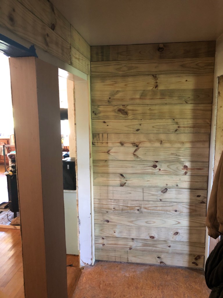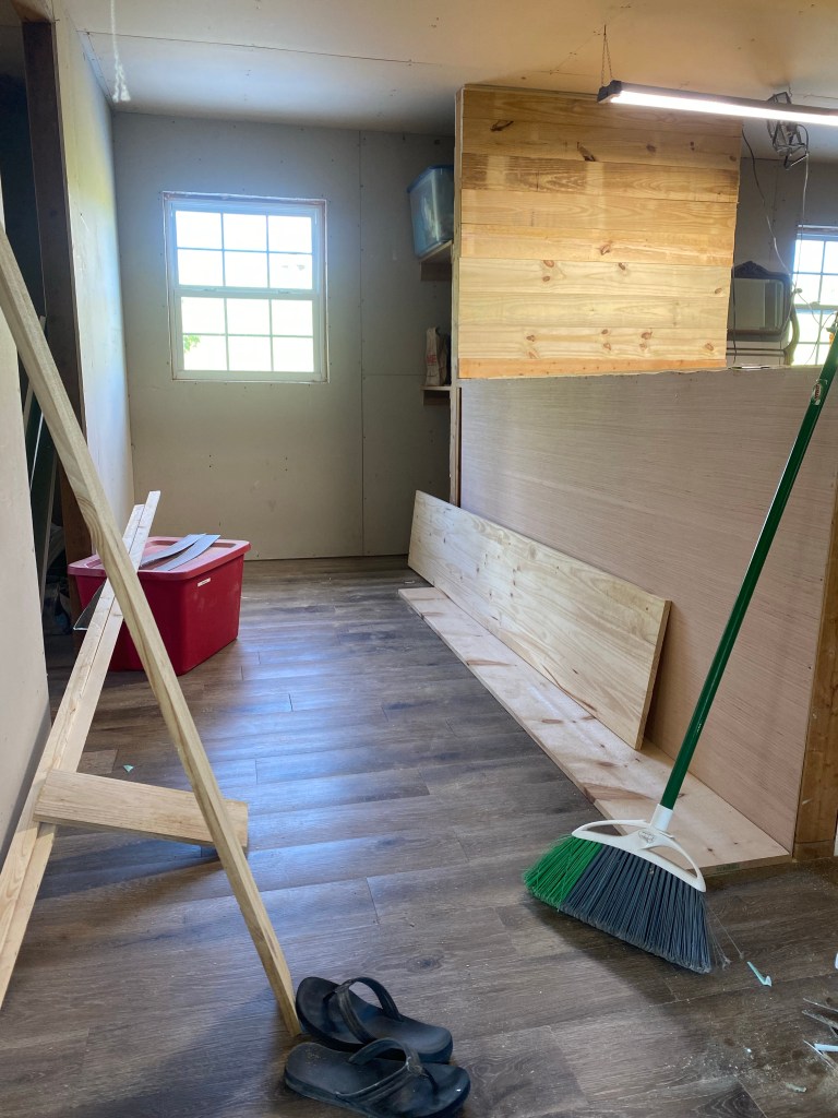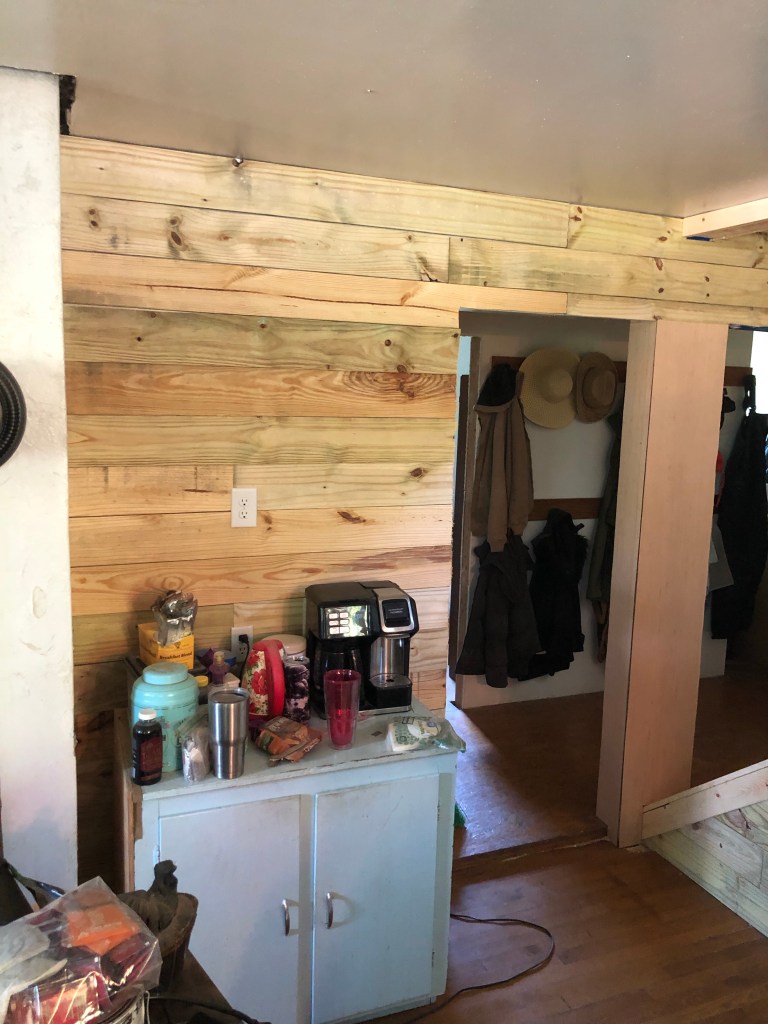 Not sure if you have ever used a wood planner or not, but Chad found a “cheaper” shiplap alternative. You buy fence boards and run them thru the planner 2-3 times. What a price saving, but lots of work 🤣🤣.