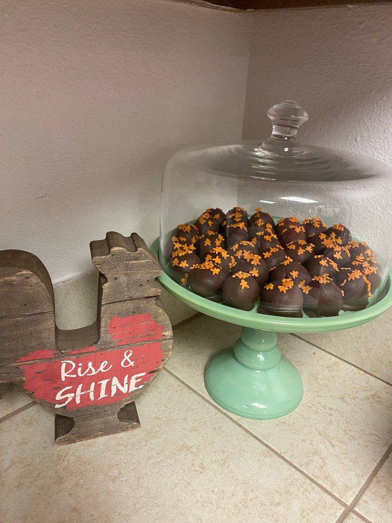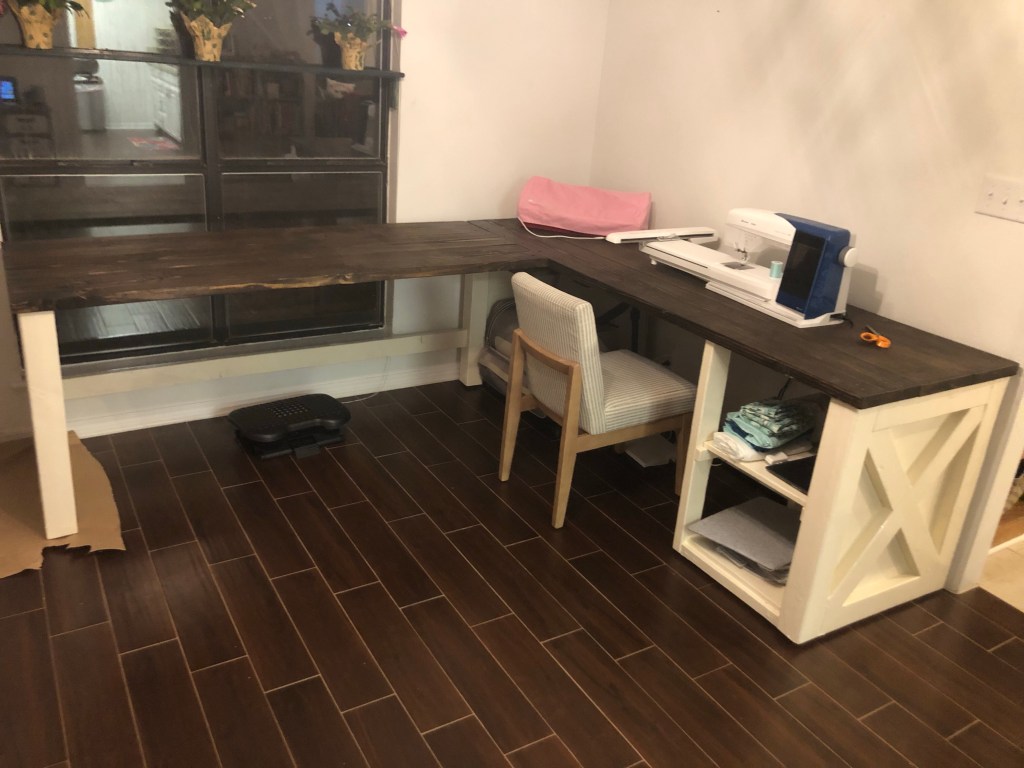 Chad has had the chance to work out in the garage a lot more since I work until 8:30 pm. He refurbished a chair we found at a garage sale for our closet. It turned out beautiful. Chad also made some challenge coin stands for some co-workers in the shape of Texas. He is truly talented and doesn’t give his self enough credit.