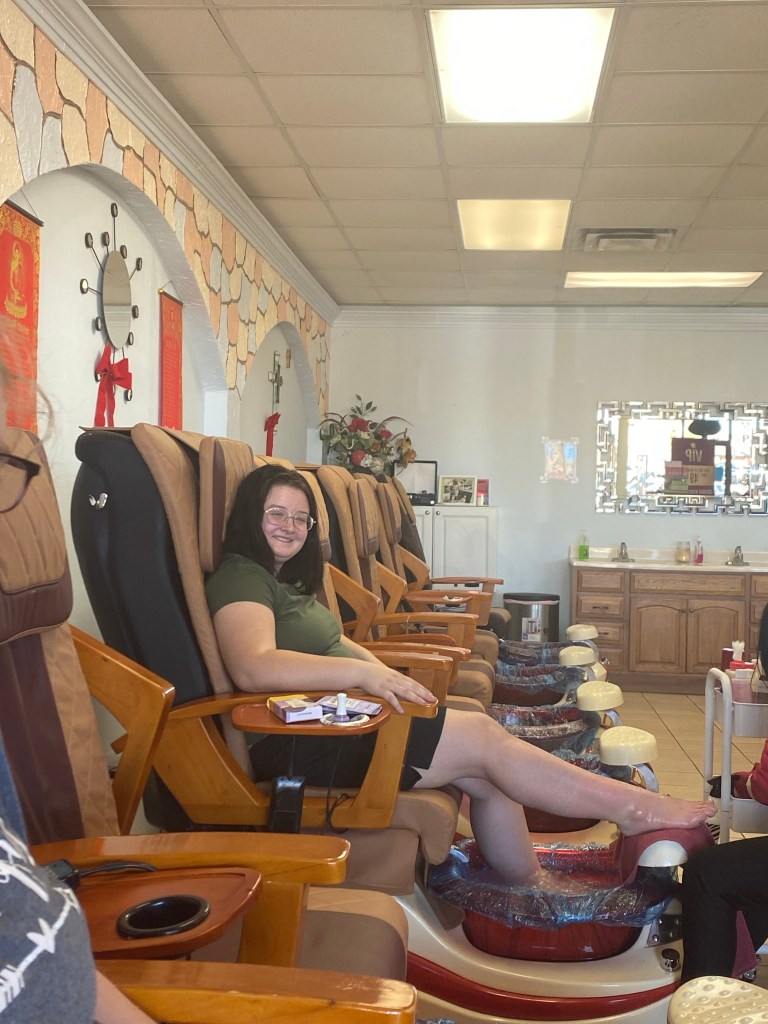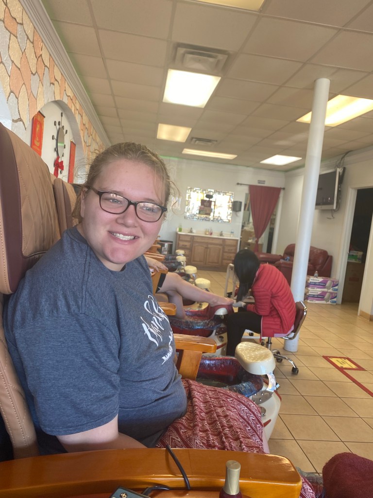 Our youngest daughter turned 16 on December 23. We tried taking her out for her birthday but everything was closed and we went to Taco Bell. Luckily the next night Chad was able to get us in to a restaurant in town and I met them there after work. The food was ordered already when I got off work. We let them know it was her birthday so they could sing to her (her not so favorite part of her birthday). We did celebrate early in the month getting pedicures. I didn’t make her cake this year, she wanted an ice cream cake.